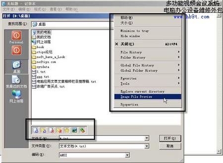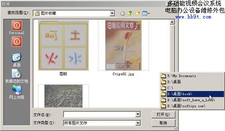在Windows下工作時(shí),總有幾個文件夾是我們平時(shí)經(jīng)常要去的。但是Windows的文件對話框只提供了“歷史”、“桌面”、“我的電腦”和“網(wǎng)上鄰居”幾個選項(xiàng)供我們選擇。安裝Dialogue Box Assistant軟件,在打開和保存文件對話框的工具欄上會發(fā)現(xiàn)兩個小圖標(biāo),該軟件會把最近打開/保存過的文件/文件夾保存起來,(如圖9)所示,只要單擊最右邊的按鈕就可以看到我們最近訪問過的文件夾,單擊就會馬上切換到相應(yīng)的文件夾下。單擊對話框工具欄Dialogue Box Assistant左邊小按鈕會顯示最近打開過的文件。