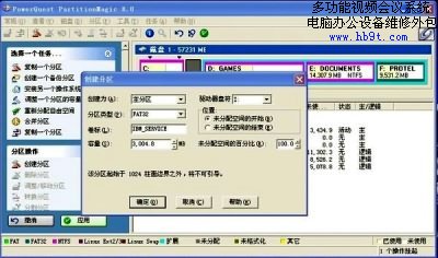 點擊確定,此時可以看到C分區(qū)后面出現了一個未分配的區(qū)域。在此未分配的區(qū)域上點擊鼠標右鍵,選擇創(chuàng)建,彈出一個創(chuàng)建分區(qū)窗口。在創(chuàng)建為選擇主分區(qū)、分區(qū)類型選擇FAT32、卷標中輸入IBM_SERVICE、容量里輸入3000MB、驅動器盤符選擇缺省配置。在這里說明兩點,必需得創(chuàng)建成主分區(qū),否則此分區(qū)無法啟動。卷標名稱也不能有錯,否則F11的程序將找不到相應文件。