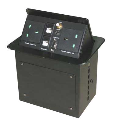 多功能桌面插座為用戶提供了一個(gè)緊湊、美觀的桌面信號(hào)連接解決方案。它采用簡(jiǎn)單易用的接入方式,我們?cè)谶B接視頻、音頻、計(jì)算機(jī)視頻、網(wǎng)絡(luò)、電話、電源等接口時(shí),輕按連接盒的頂部,連接盒即時(shí)釋放機(jī)械鎖定器,接口盒面被氣撐式結(jié)構(gòu)平滑打開,完全展現(xiàn)出連接接口面。使用完畢后,只需輕輕按下接口盒蓋,機(jī)械鎖定器隨即鎖定連接盒。鎖定后的連接盒與桌面保持齊平,所有接口被巧妙地隱藏起來(lái),盒面美觀整潔并與桌面渾然一體。