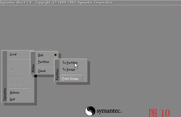 2 回車后 就會(huì)進(jìn)入GHOST 的操作界面 見圖10