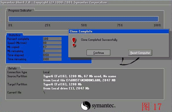 此處是提示GHST根據(jù)您的指示 已經(jīng)備份完畢給出的二個選擇 一 默認為重新啟動